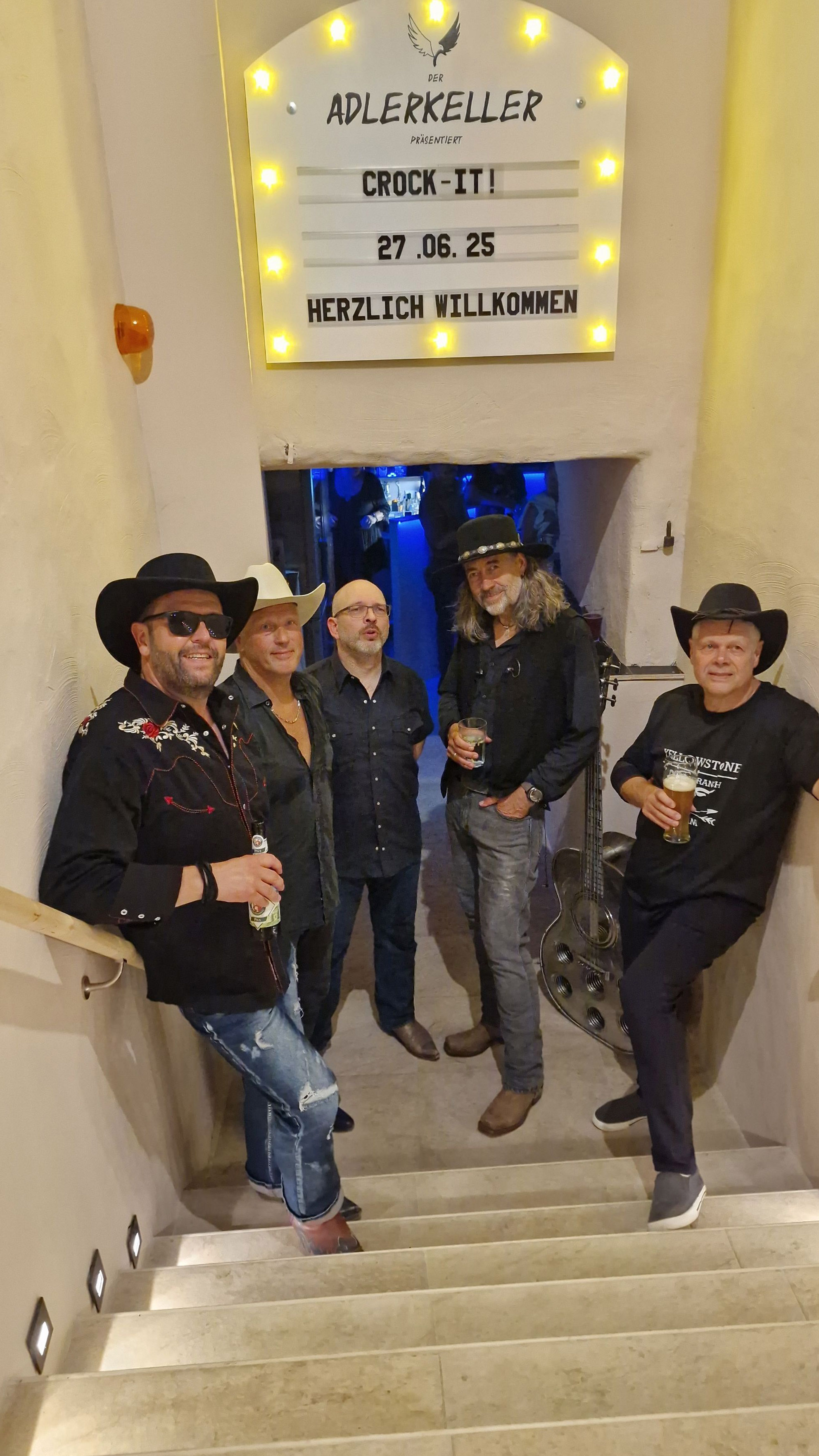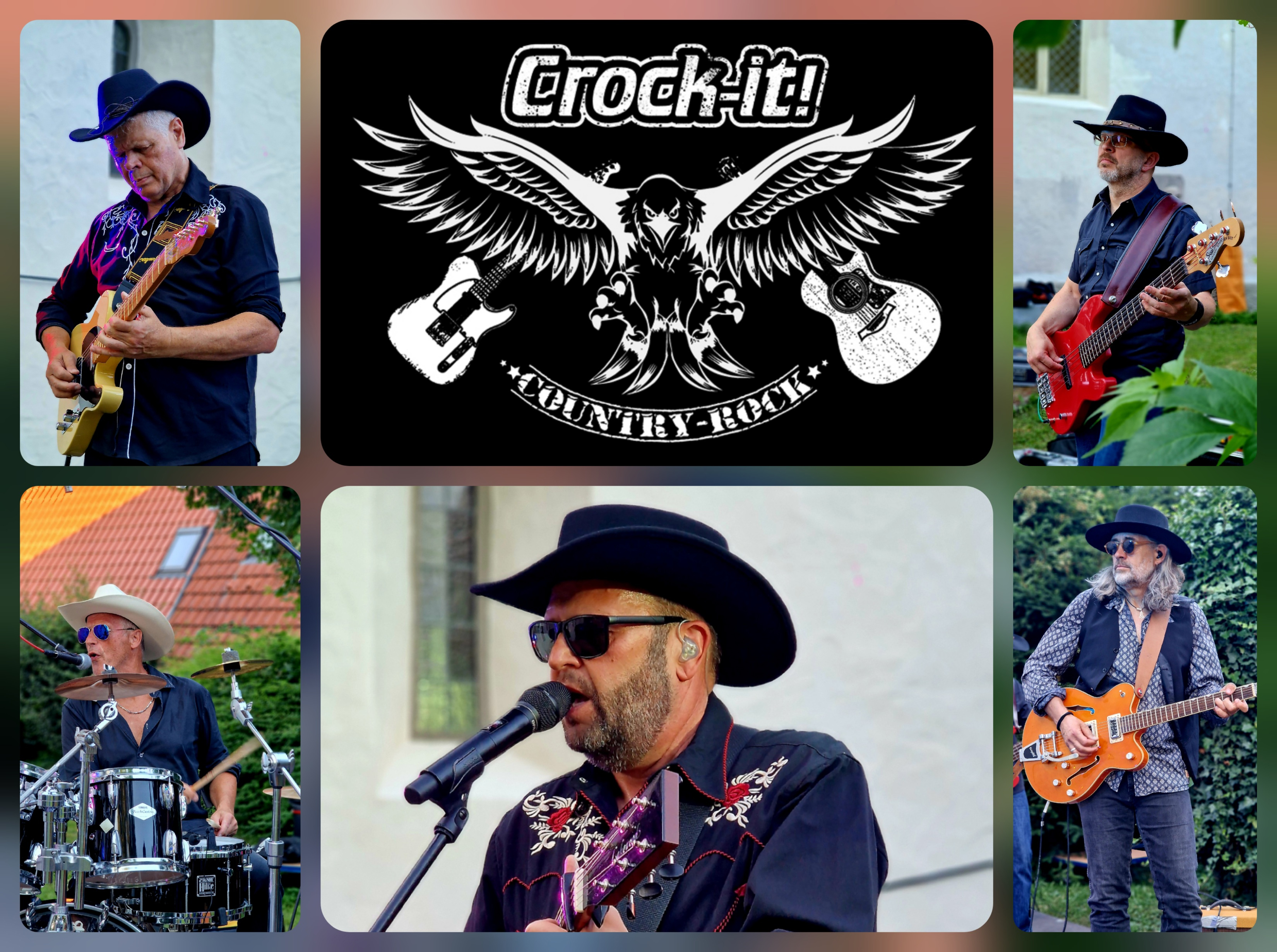 Sie begeisterten auf Europa‘s größtem Country-Event, dem Western Experience Festival in Holland und spielten im Vorprogramm von Größen wie The Boss Hoss, Kiefer Sutherland und Rag'n'Bone Man: Crock-it! gilt seit 15 Jahren als feste Größe der süddeutschen Musikszene bei den Fans von Country- und Southern Rock. Die fünf Stuttgarter Musiker haben sich mit großer Leidenschaft der Interpretation amerikanischer Klassiker dieses Genres verschrieben. Für neue Impulse und frische Dynamik hat sich die Band 2025 mit Sänger Chris Crae sowie Gitarrist Roland Meissner musikalisch verstärkt. Die Live-Auftritte von Crock-it! beeindrucken nun durch noch mehr Energie und Leidenschaft, was den Status von Crock-it! als führende Größe im Country- und Southern Rock-Genre unterstreicht.